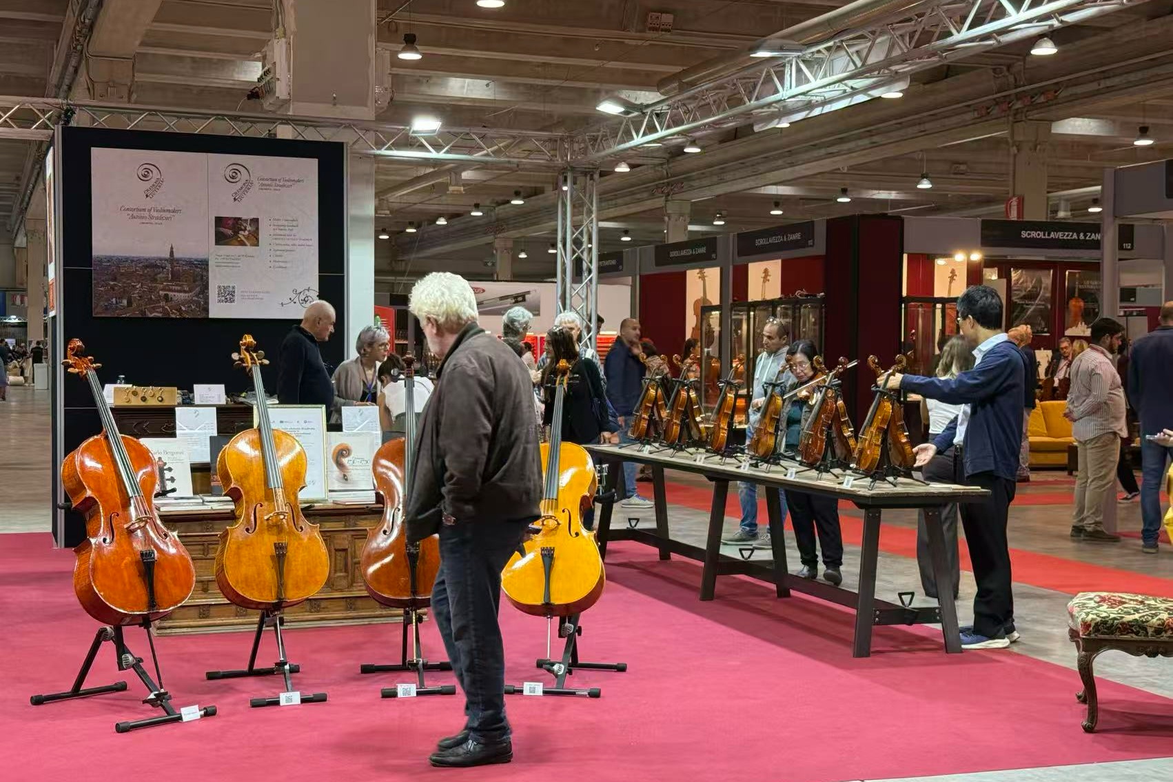 作为克雷莫纳的王牌领域,弦乐区汇聚全球技艺领先的制琴师,从复刻16世纪经典名琴的手工作品,到融入现代材料科技的新型提琴,每一件展品都承载着“世界小提琴故乡”的匠心底蕴。这里不仅是展示平台,更是制琴师与经销商、音乐家商业对接的核心阵地。